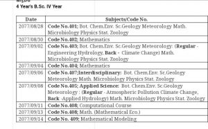 ४ वर्षे वी.एस्सी, चौथो बर्षको परिक्षा तालिका