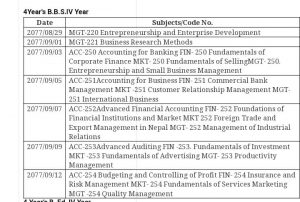 ४ वर्षे वी.वि.वि.एस, चौथो बर्षको परिक्षा तालिका