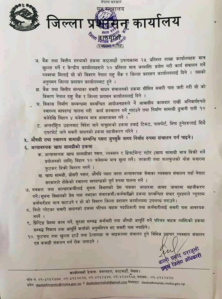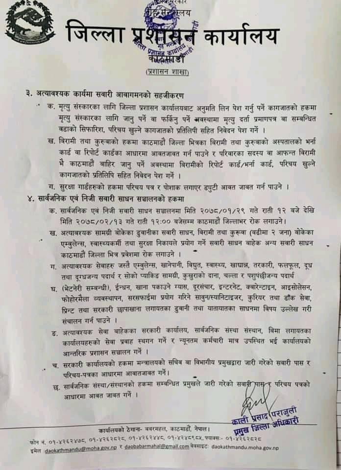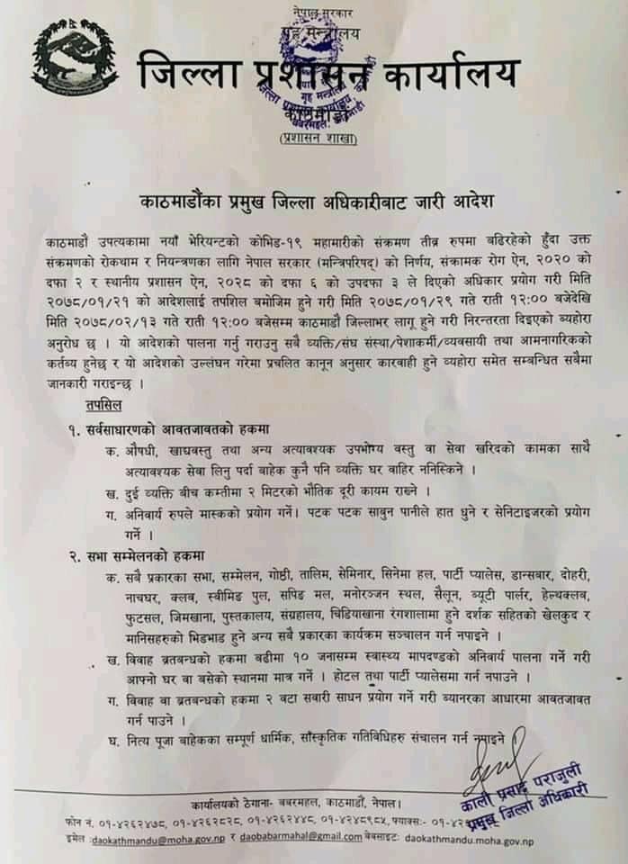 काठमाडौंका प्रमुख जिल्ला अधिकारीबाट जारी आदेश :