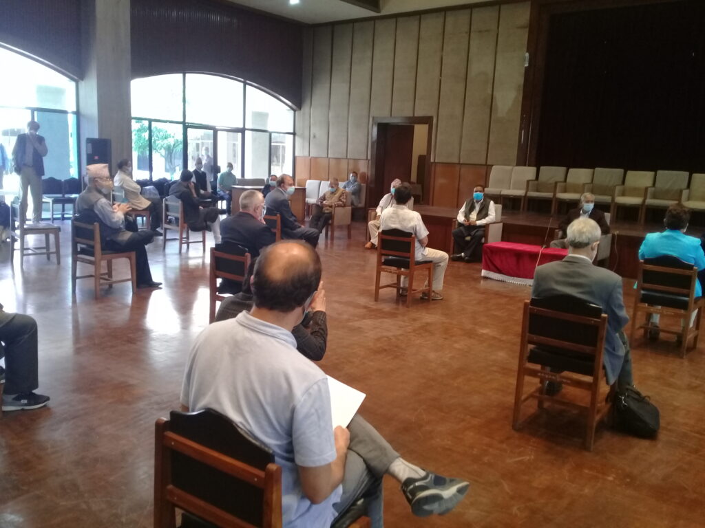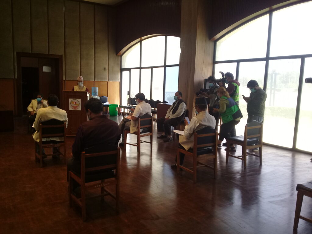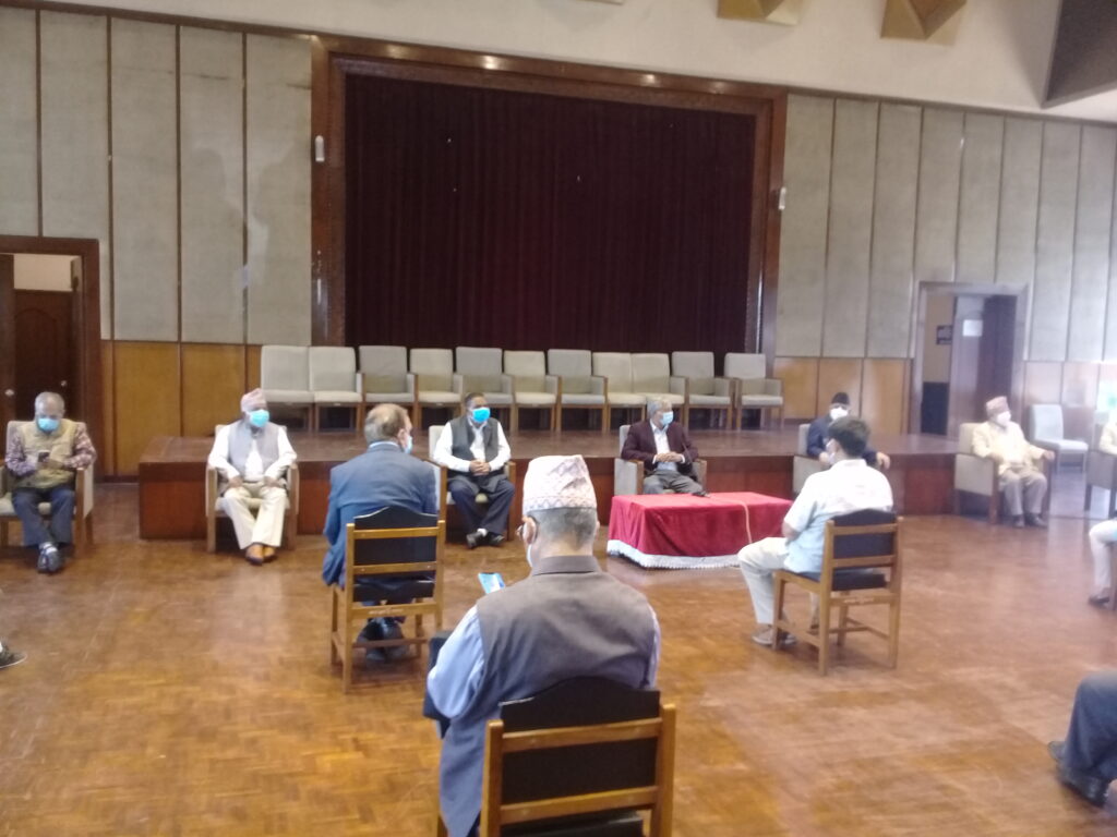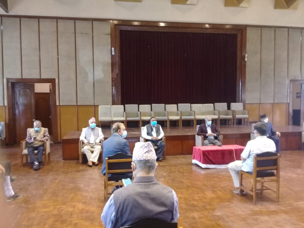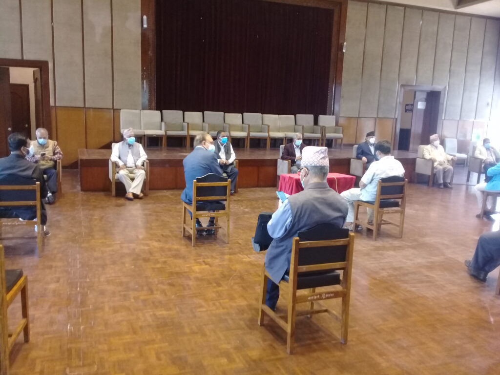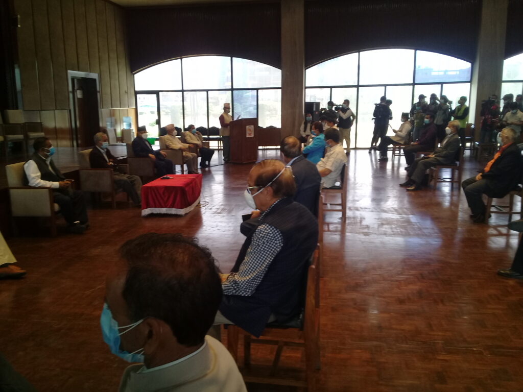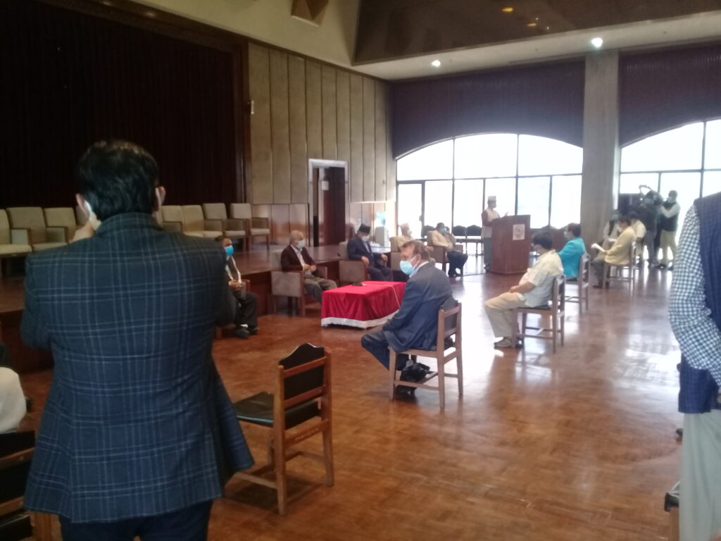 काठमाडौं । प्रतिनिधिसभा विघटनको कदमपछि विपक्षी दल एक ठाउँ उभिएका छन् । यसै अनुरूप आज बानेश्वरको संघीय संसदमा भेला भएका पाँच आइतबार विहान रिट दर्ता गर्न अदालत जाने भएका निधो गरेका छन् । नेपाली कांग्रेस, माओवादी केन्द्र, एमालेको माधव समूह, जसपको उपेन्द्र यादव र जनमोर्चाका नेताहरूको आजको भेलालाई तस्बिरमा हेरौ ।