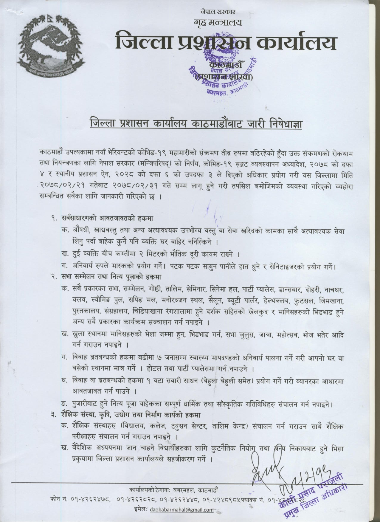 काठमाडौँ- काठमाडौँ उपत्यकामा बैशाख १६ गते देखि जारी निषेधाज्ञा फेरी जेठ ३१ सम्म थप्ने निर्णय भएको छ।