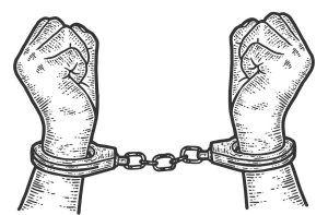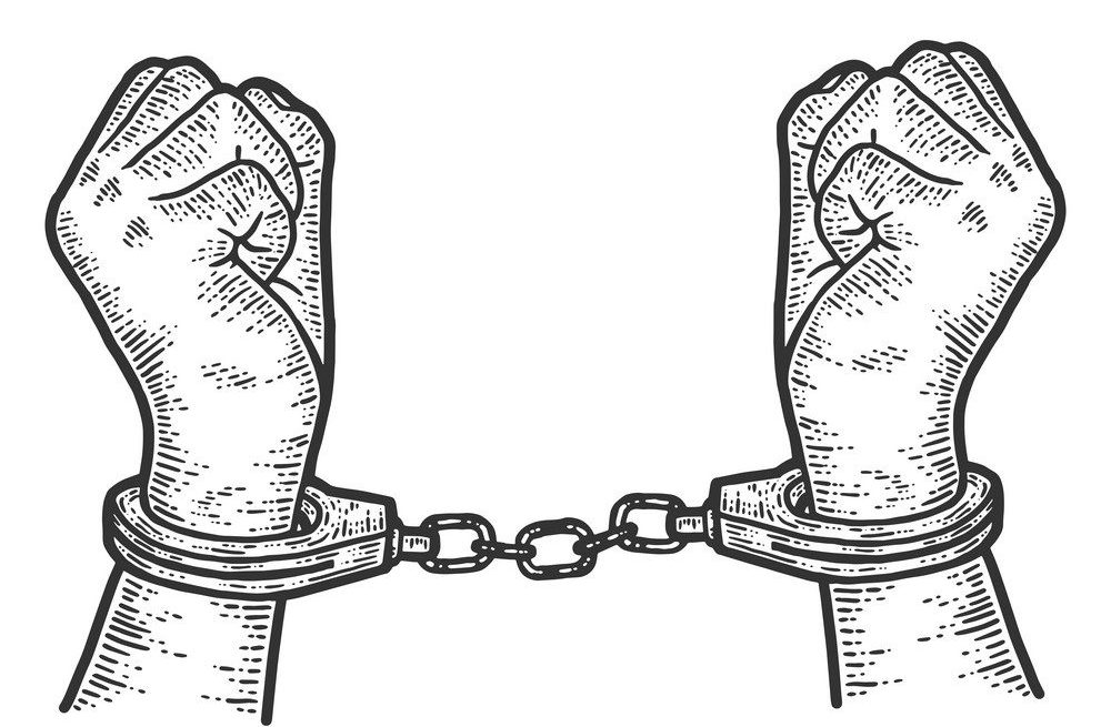 Offender, male hands in handcuffs. Sketch scratch board imitation. Published On: १२ पुष २०७८, सोमबार १४:५४