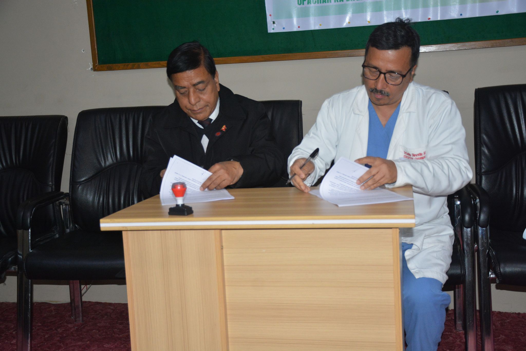 हस्पिटलको सभाहलमा भएको क्यान्सर जनचेतना  कार्यक्रममा ललितपुर चेम्बर अफ कमर्सका अध्यक्ष पुष्प रत्न शाक्य र नेपालमा क्यान्सर हस्पिटलका कार्यकारी अध्यक्ष डा. सुदिप श्रेष्ठले समझदारीपत्रमा हस्ताक्षर गरेका हुन्।