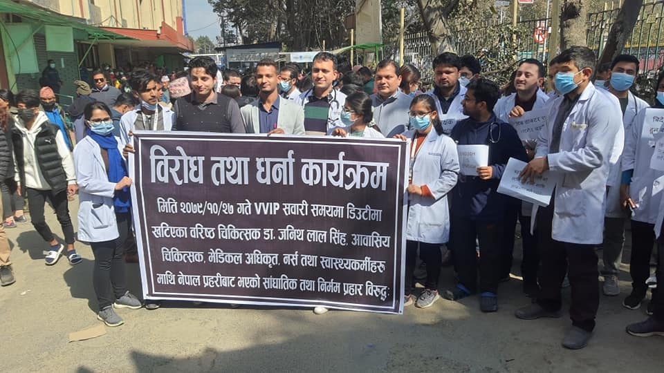 काठमाडौं । राष्ट्रपति सवारीका बेला चिकित्सक माथि भएको प्रहरी हस्तक्षेपको विषयलाई लिएर उत्पन विवाद सकारसँग ६ बुँदे सहमति भएपछि स्थगित भएको छ । आन्दोलन स्थगित भएसँगै स्वास्थ्य सेवा पुन सुचारू भएको छ । आज विहानदेखि प्रधानमन्त्री तथा मन्त्रिपरिषदको कार्यालयमा सरकारी प्रतिनिधि र चिकित्सकहरुबीच भएको वार्ता पछि विवाद समाधान भएको हो ।