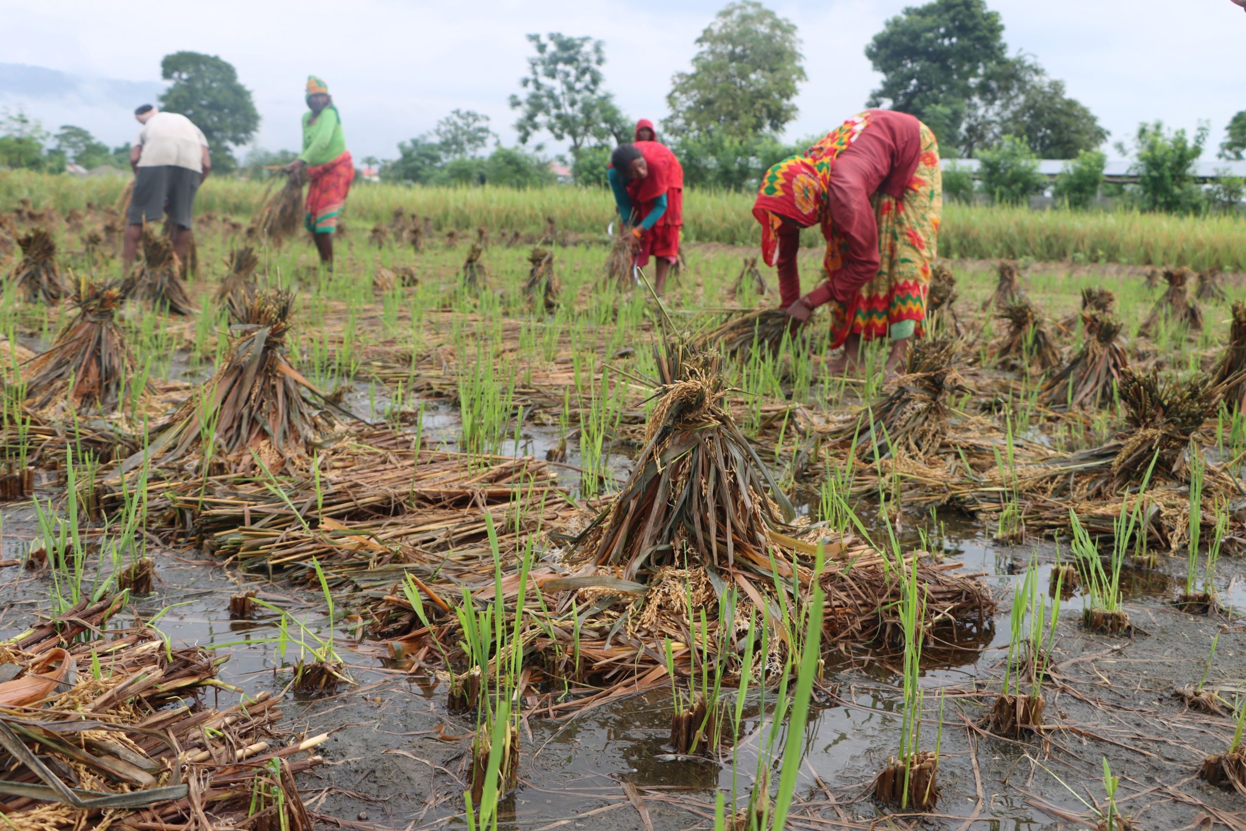 निरन्तरको वर्षाले खेतमा भित्र्याउन काटेर सुकाएको धान डुबाएको भरतपुर महानगरपालिका–१६ स्थित शरणपुरका सुनिल दवाडीले बताउनुभयो । “मैले दुई बिघामा धान लगाएको हो । त्यसमध्ये एक बिघामा लगाएको धान रौतहटबाट खेताला ल्याएर कटाएको थिएँ”, खेतमा पानीले निथ्रुक्क भिजेको धान उठाउँदै गर्दा भेटिएका उहाँले भन्नुभयो, “धान रोप्न गरेको लगानी पनि खेर गयो ।” खेत रोप्न रु २५ हजार लागेको उहाँले बताउनुभयो । लगातार परेको पानीमा डुबेर धान उम्रिएको छ ।